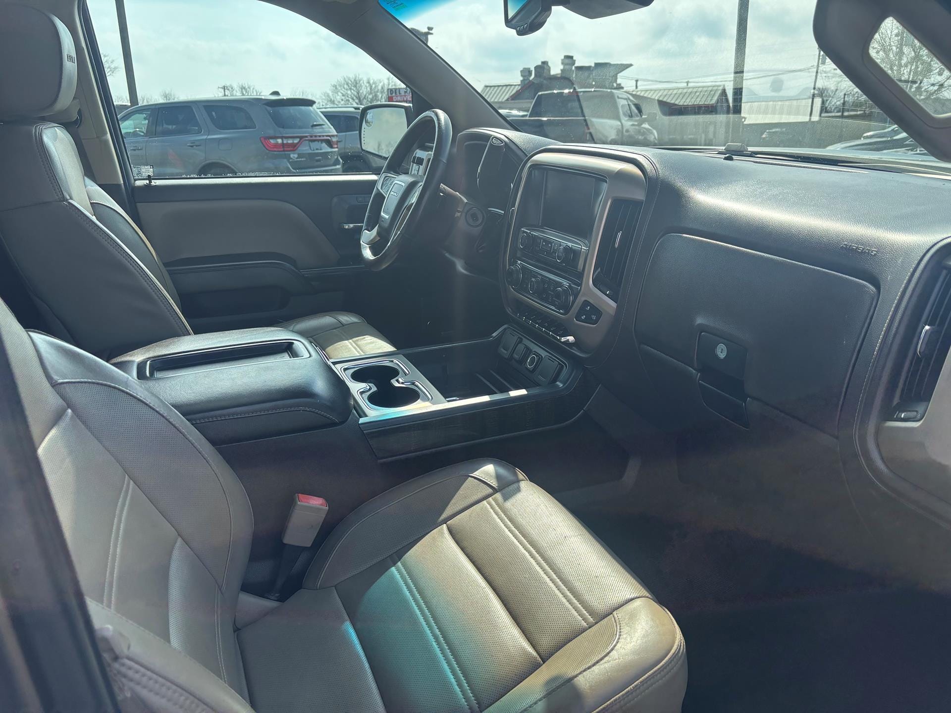 2015 GMC Sierra 1500 Denali The 2015 GMC Sierra 1500 Denali is the top?tier luxury full?size pickup that blends premium comfort with serious capability. It comes with powerful V8 engine options, including a 5.3L or an available 6.2L EcoTec3 V8, delivering strong performance and towing strength. Denali models stand out with a signature chrome mesh grille, polished 20?inch wheels, chrome exterior accents, and advanced lighting. Inside, the cabin is upscale with leather seating, heated and cooled front seats, an 8?inch IntelliLink touchscreen with navigation, Bose premium audio, and tech features like an 8?inch customizable driver display. Comfort and convenience features such as power?adjustable seats, heated steering wheel, dual?zone climate control, and premium trim make it ideal for everyday driving or long trips. Built for work and play, the Sierra Denali also offers capabilities like four?wheel drive, a robust towing package, EZ?Lift & Lower tailgate, and available advanced suspension options for a smooth ride.
